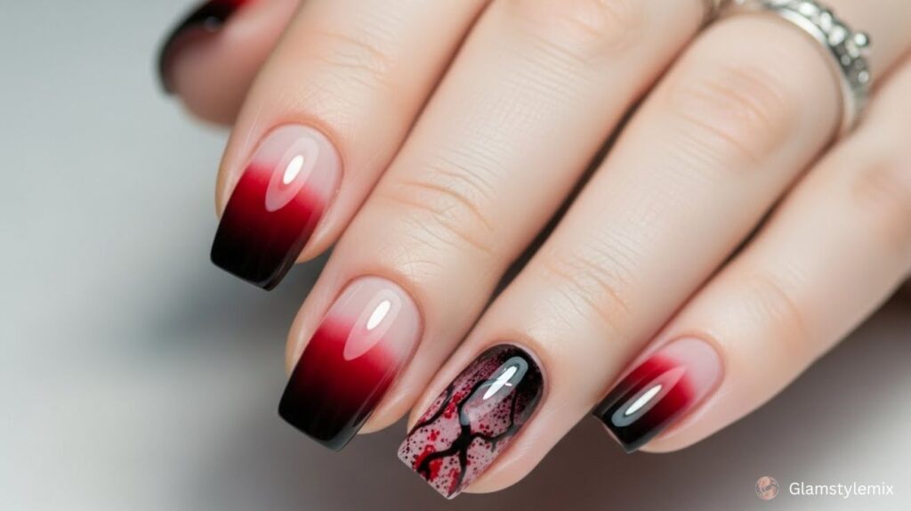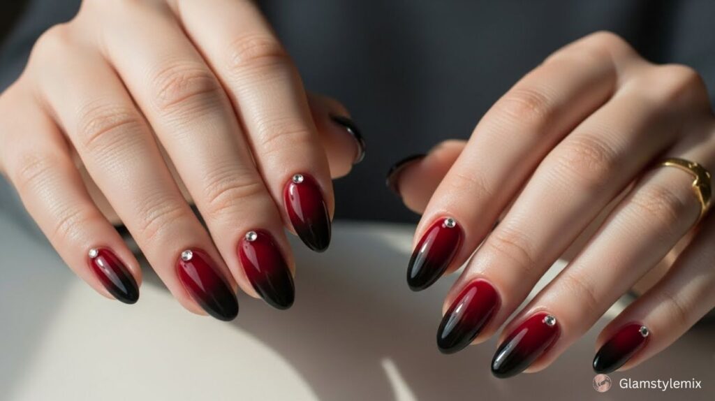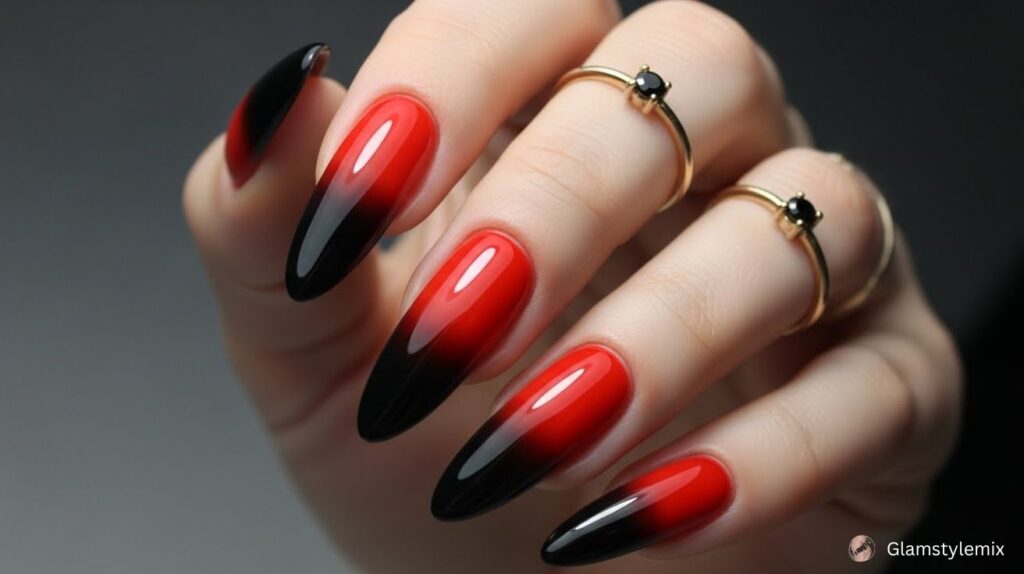 This design pairs well with minimal accessories, simple rings, and shorter nail lengths. Many people who want professional-looking nails without excessive design details prefer this timeless fade. It also photographs beautifully, making it a favorite among content creators exploring stylish red and black nail ideas.