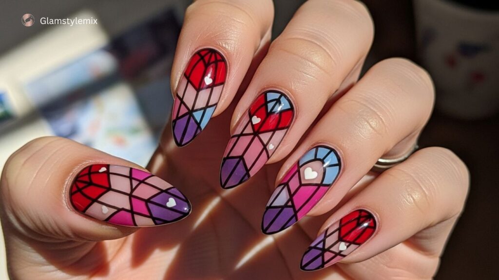 Those with stiletto nails have the most room for large, intricate stories like the stained-glass look. Always consult with your technician about which flattering nail shape will support your favorite Valentine’s Day nail ideas. The right shape ensures your manicure is both durable and stylish.