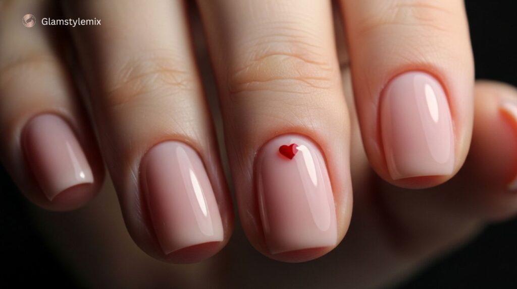 Minimalism is still a huge trend in the USA fashion scene for 2026. Placing a single, micro-hearted person near the cuticle creates a look that is both sophisticated and cute. These minimalist Valentine’s nails are perfect for professionals who need to keep their look understated.
