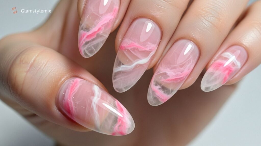 This design mimics the appearance of the famous “love stone” using marbled pink textures. By layering translucent polishes, you create a look that has incredible depth and realistic veining. It’s a beautiful way to wear Valentine’s Day nail ideas that feel organic and earthy.